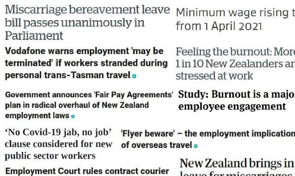 Whether you prefer to get your news fix in print or online, you don’t have to look further than the front page to see that employment law is everywhere. With recent headlines making national news such as: “Flyer beware – the employment implications of overseas travel”, “Can NZ employers take a “no jab, no job […]